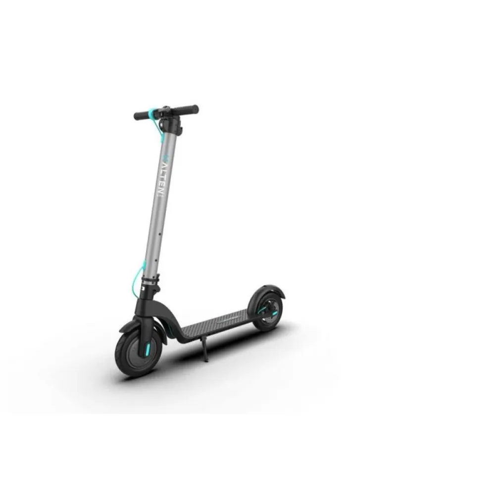 Halten Lite оборудован двигателем 350 Вт, ведущее колесо переднее. Электросамокат имеет 10 дюймовые колеса, которые защищены полноценными крыльями. Транспорт развивает скорость около 25 км/ч. Дисковая тормозная система позволит вовремя реагировать на дорожную ситуацию. На переднем колесе установлен рекуперативный тормоз, возвращающий часть заряда аккумулятору при торможении.