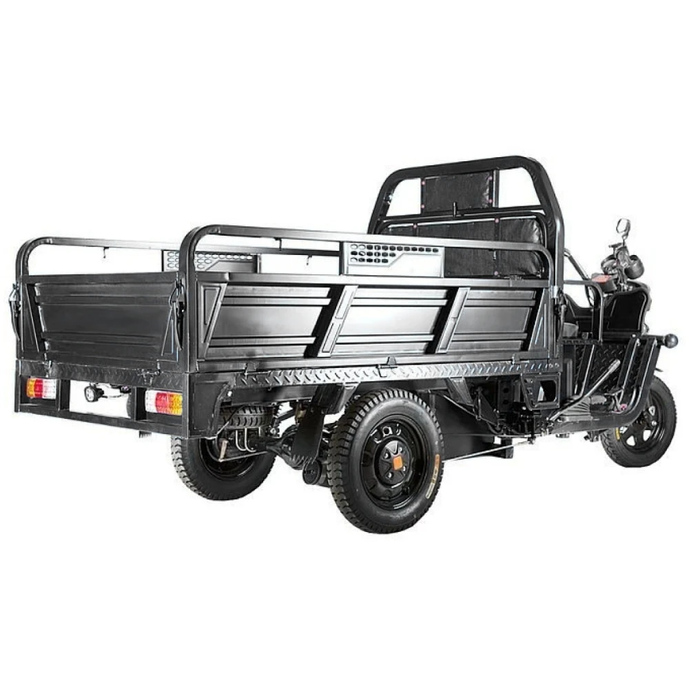 Грузовой электротрицикл Rutrike D4 1800 60V1200W в темно-сером цвете — это идеальное решение для перевозки грузов в любых условиях. Оснащенный мощным двигателем на 1200 Ватт, он развивает скорость до 25 км/ч и способен выдерживать нагрузку до 1000 кг. Трицикл оборудован дополнительным пассажирским местом, что делает его удобным не только для грузоперевозок, но и для поездок с напарником. Передняя подвеска с гидравлическими амортизаторами и задняя подвеска, состоящая из рессор, пружин и гидравлических амортизаторов, обеспечивают плавный ход и комфорт на любых дорогах. Эксплуатация возможна в любое время года благодаря всесезонной конструкции.