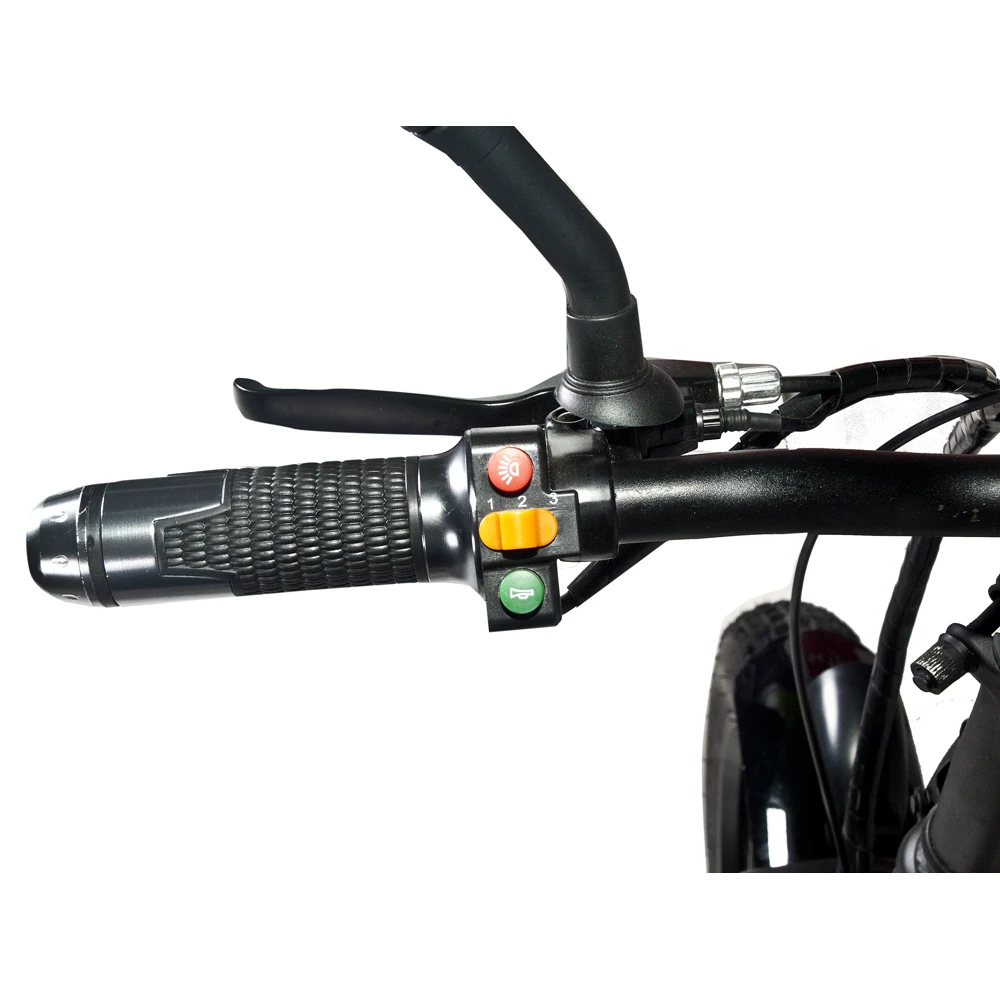 Модель представлена алюминиевой рамой с максимальными параметрами грузоподъемности до 200 кг. Складная конструкция рассчитана на простоту транспортировки и хранения. Улучшенные скоростные показатели 45 км/час возможны благодаря двигателю 500 Вт. Технические характеристики модели подходят для езды по пересеченной местности. Главной особенностью управления является возможность перехода на педальный режим с целью увеличения километража, улучшения физической формы. Аккумулятор емкий, быстросъемный (12Ah 48В). Фирменная подвеска и широкие колеса легко преодолевают дорожные неровности.