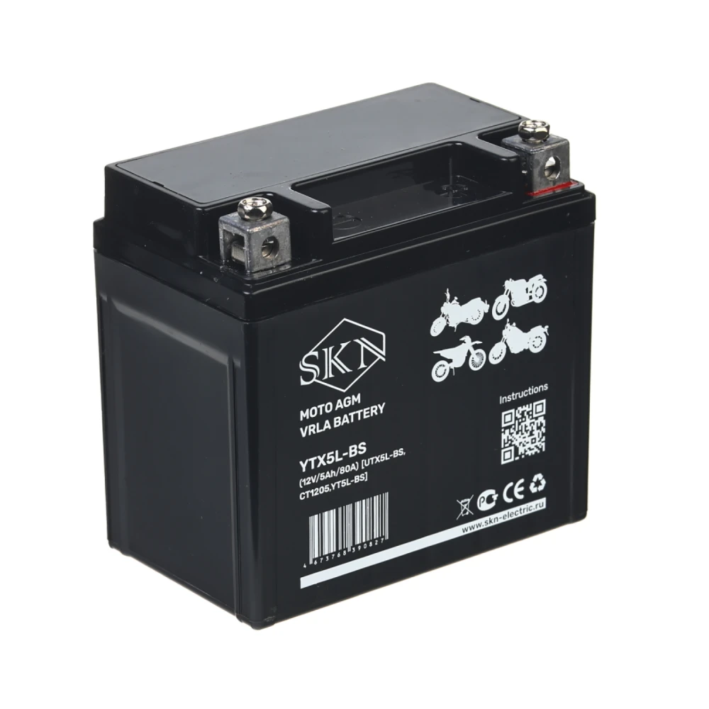 Аккумулятор стартерный для мототехники SKN YTX5L-BS (12V/5Ah/80A) [UTX5L-BS, CT1205, YT5L-BS]